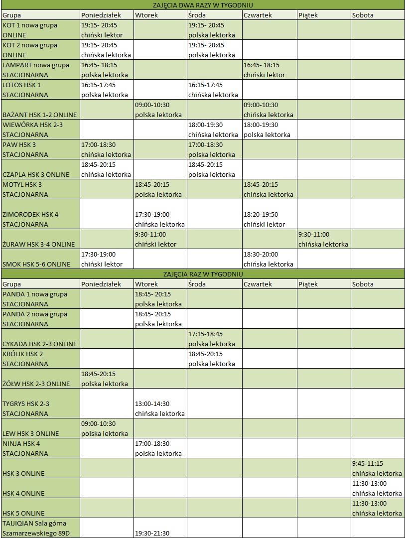 PLAN ZAJĘĆ W INSTYTUCIE KONFUCJUSZA UAM W ROKU AKADEMICKIM 2025/2026 (SEMESTR ZIMOWY)